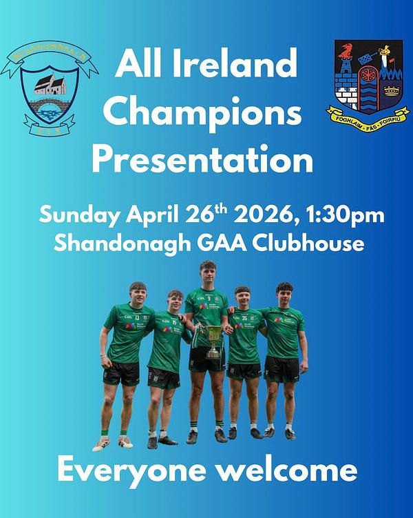 Shandonaghs Hogan Cup Champions are visiting the Nurse...